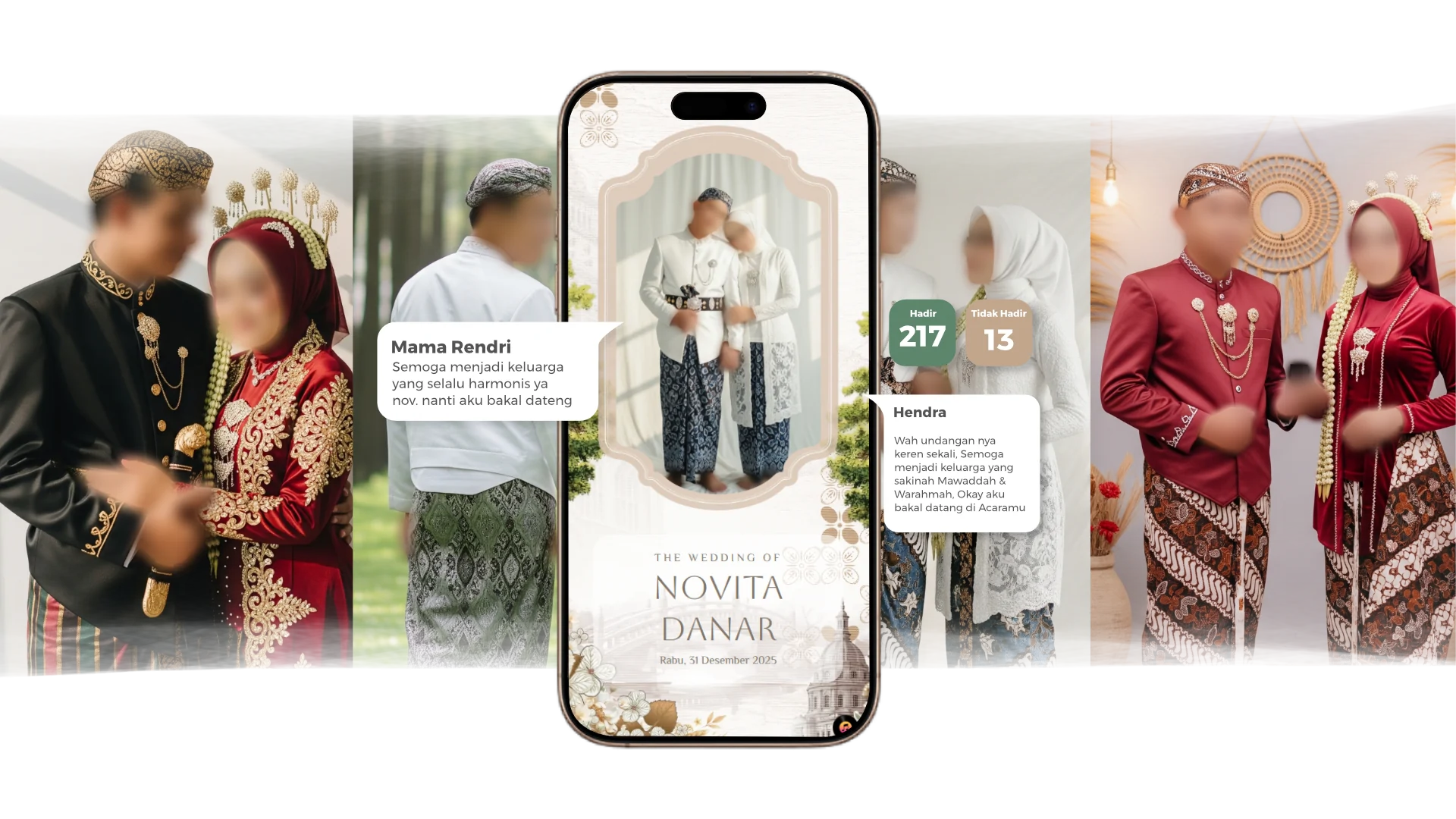 Kami menghadirkan solusi modern untuk berbagai acara spesial Anda melalui undangan website interaktif yang elegan, cepat, dan hemat biaya.