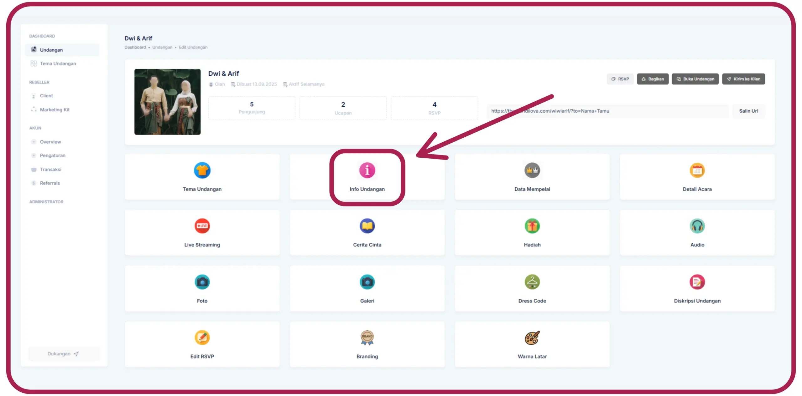 Masuk ke halaman dashboard undangan : Dashboard