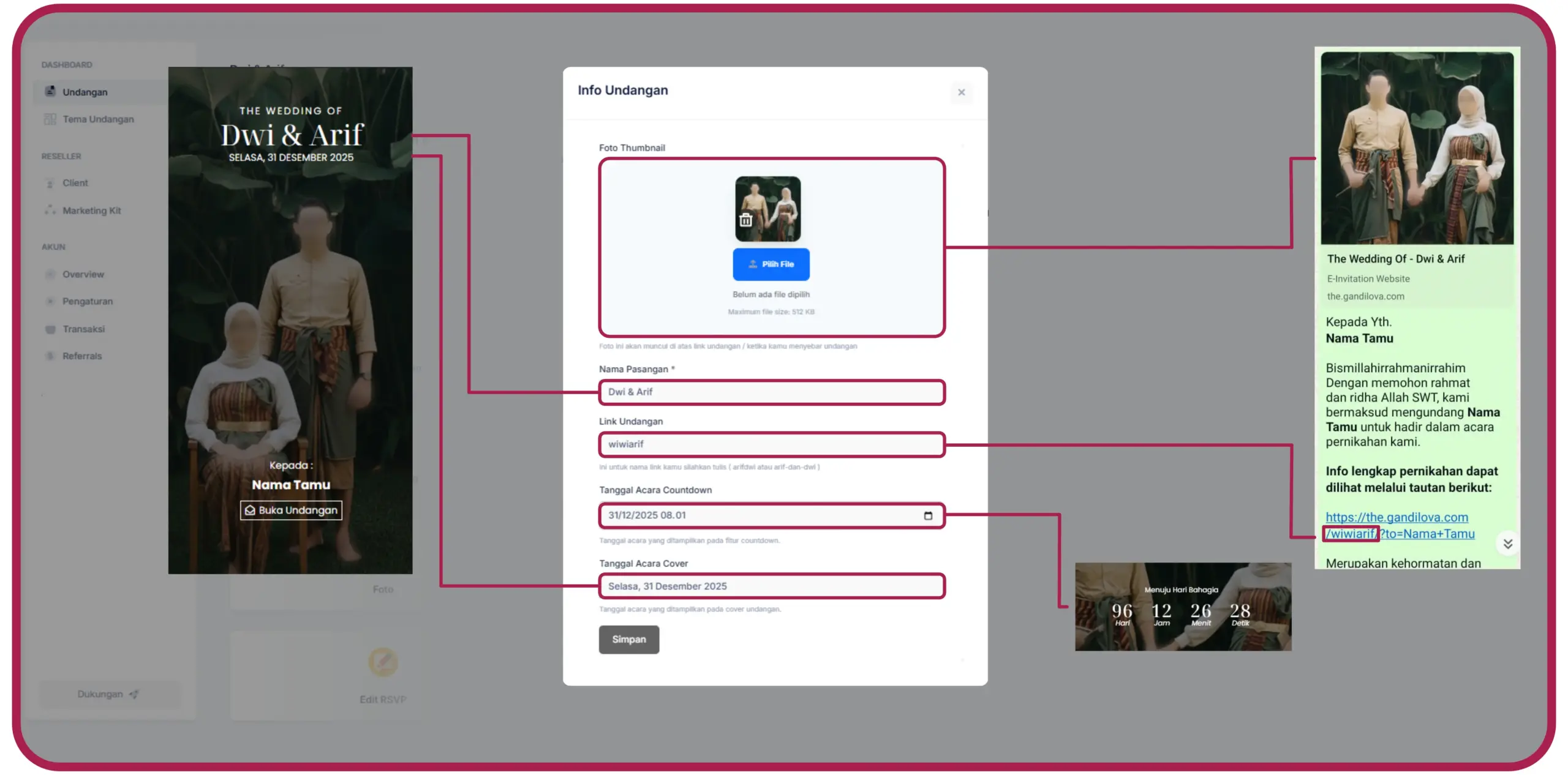 1. From Foto Thumbnail : Foto ini akan muncul pertama kali ketika link undangan anda disebar ( Contoh Terlampir )